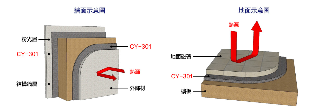 添加本產品施作完成後可有效降低熱傳導率,形成結構性隔熱功能,體感溫度降低5-8℃。