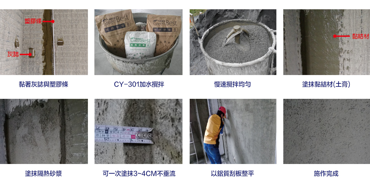 4.將攪拌完成的隔熱砂漿塗抹於牆面後即可。